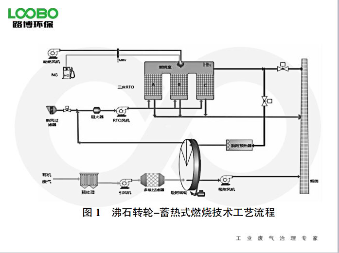 廢氣流經(jīng)蓄熱室A升溫后進(jìn)入氧化室氧化,凈化后的高溫氣體離開(kāi)氧化室,進(jìn)入蓄熱室B,釋放熱量,降溫排出,而蓄熱室B吸收大量熱量后升溫,同時(shí)清掃蓄熱室C。循環(huán)完成后,進(jìn)氣與出氣閥門(mén)進(jìn)行一次切換,進(jìn)入下一個(gè)循環(huán),廢氣由蓄熱室B進(jìn)入,蓄熱室C排出,清掃蓄熱室A。如此交替。由于廢氣已在蓄熱室內(nèi)預(yù)熱,燃料耗量大為減少,運(yùn)行成本大大降低。