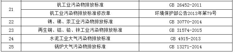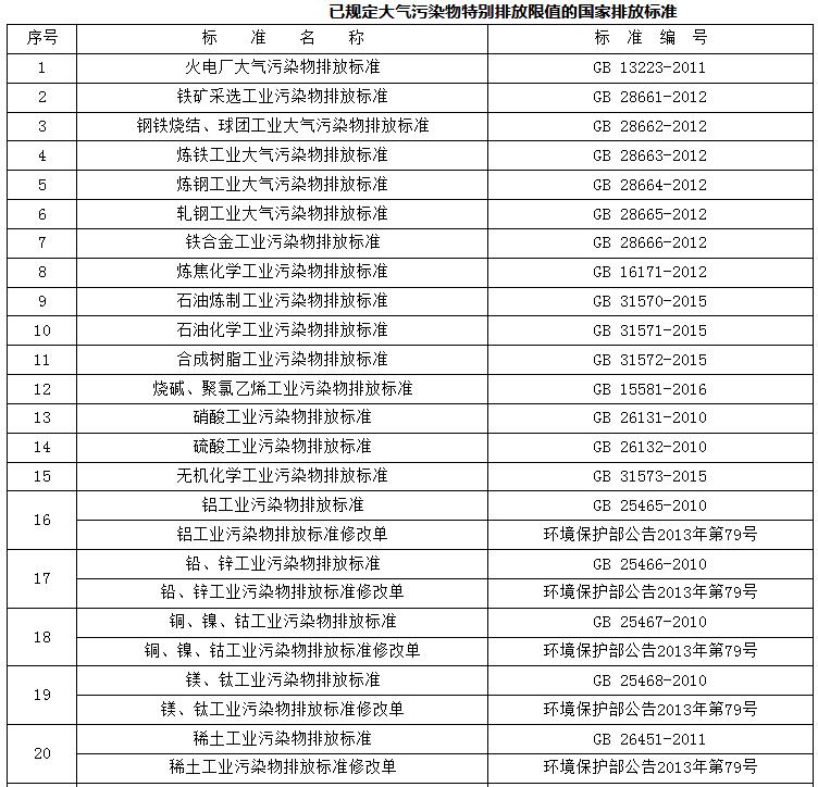 附件:已規定大氣污染物特別排放限值的國家排放標準