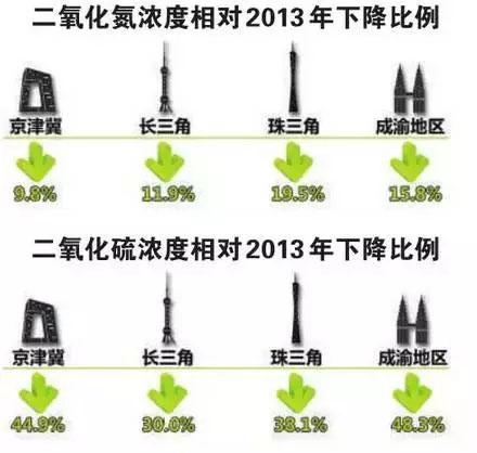 (一)《大氣十條》實施以來,全國城市空氣質量總體改善,PM2.5、PM10、二氧化氮(NO2)、二氧化硫(SO2)和一氧化碳(CO)年均濃度和超標率均逐年下降,大多數城市重污染天數減少。
