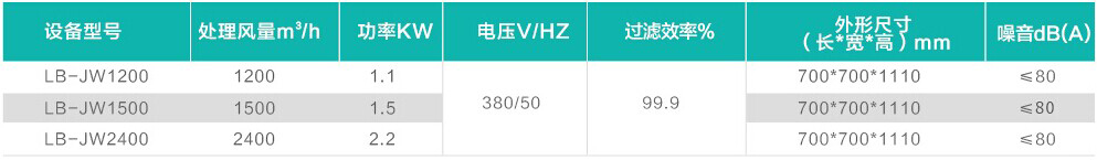 三、LB-JW型焊接煙塵凈化器技術參數